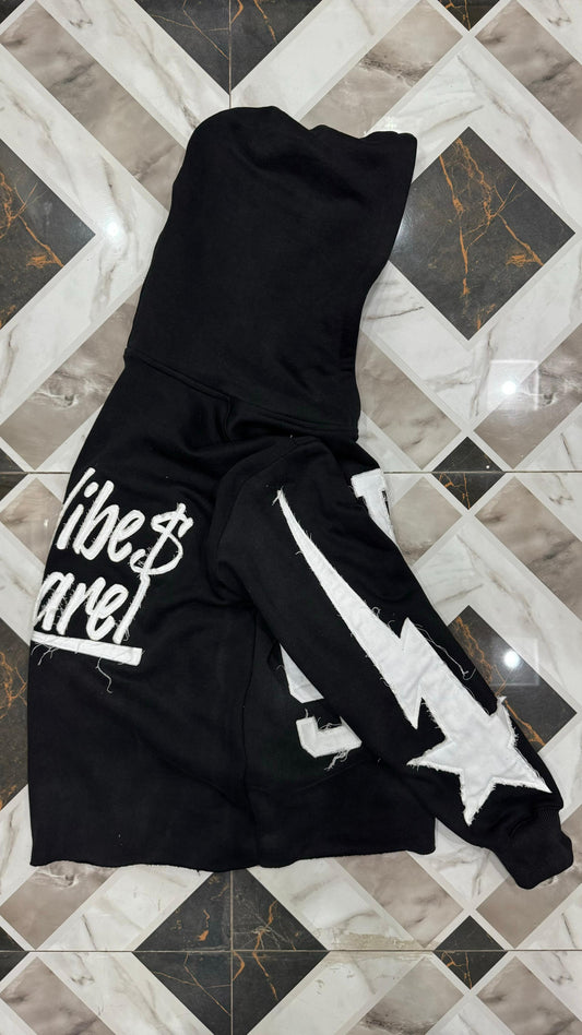BLACK “RICH STARS” Distressed Oversized Flared Sets®️