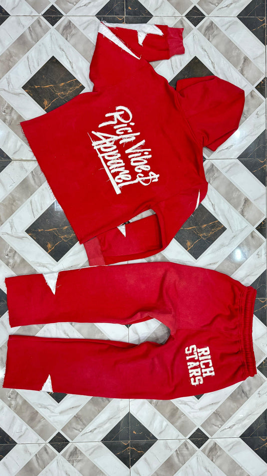 RED “RICH STARS” Distressed Oversized Flared Sets®️