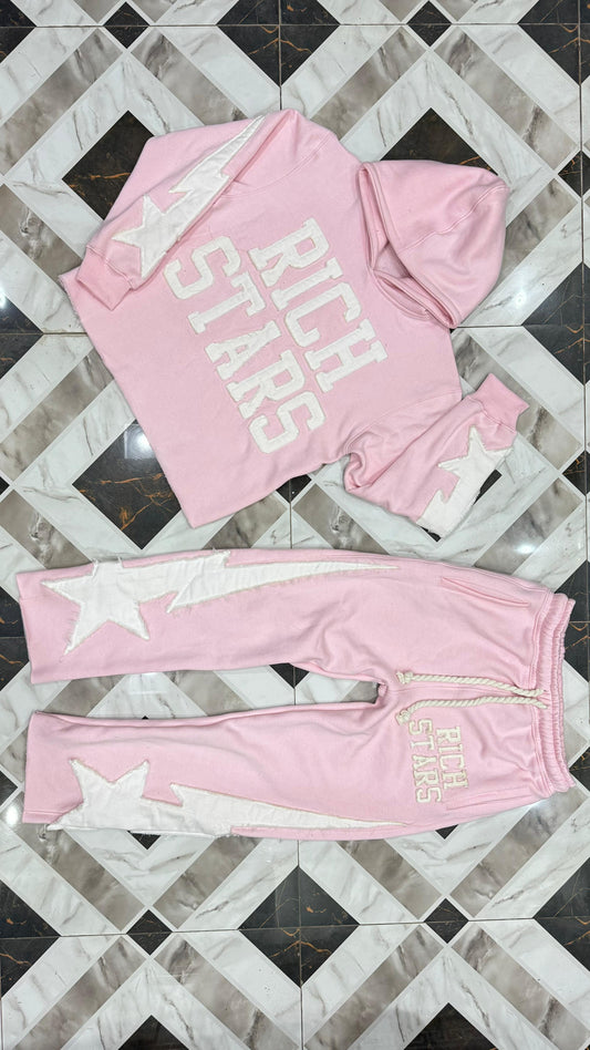LIGHT PINK “RICH STARS” Distressed Oversized Flared Sets®️